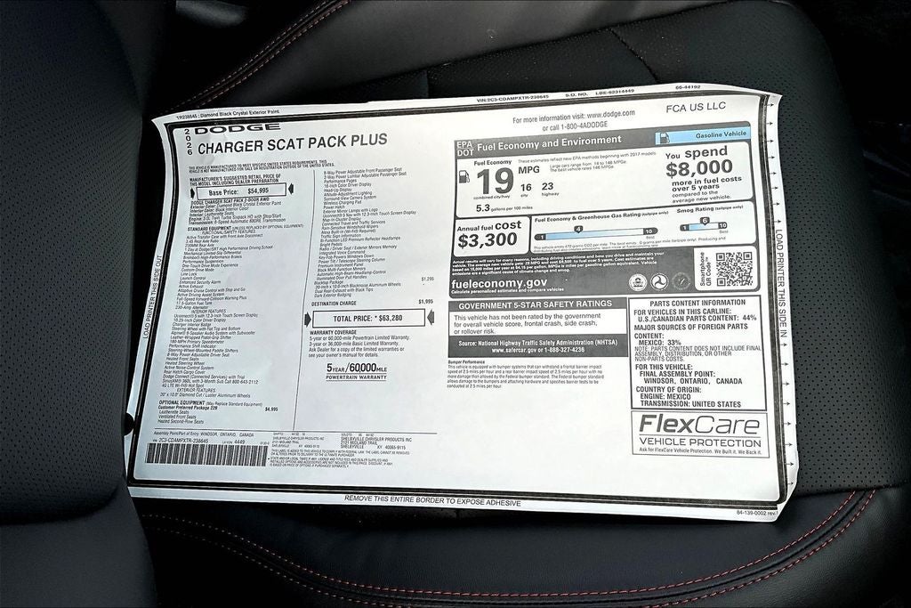 - Fuel Economy Est-Combined (MPG): 19