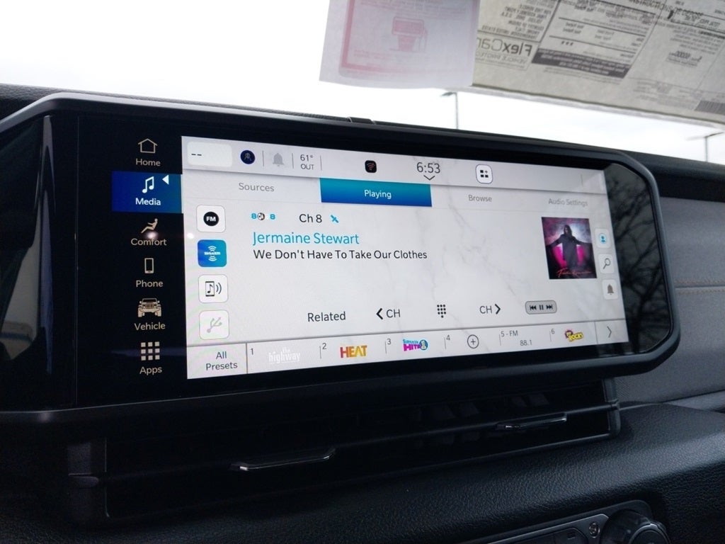 - Radio w/Seek-Scan, Clock, Speed Compensated Volume Control, Aux Audio Input Jack, Steering Wheel Controls, Voice Activation, Radio Data System and Uconnect External Memory Control