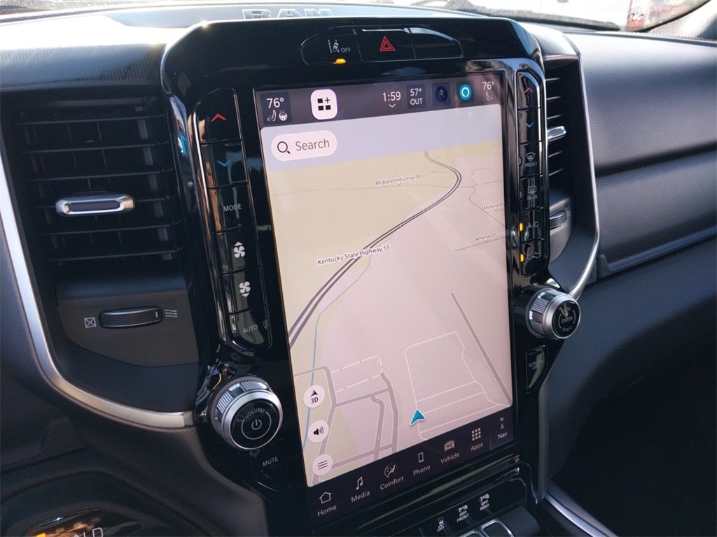2026 Ram 1500 4D Crew Cab 4WD Big Horn Level 2 Equipment Group (115V Auxiliary Power Outlet, 115V Auxiliary Rear Power Outlet, 12 Touchscreen Display, 2nd Row in Floor Storage Bins, 3 Rear Seat Head Restraints, 4 Way Front Headrests, 400W Inverter, 4G LTE Wi-Fi Hot Spot, 9 Amplified Speakers with Subwoofer, Air Conditioning ATC with Dual Zone Control, Apple CarPlay, Auto Power-Folding Mirrors, Auto-Dimming Exterior Driver Mirror, Auto-Dimming Rear-View Mirror, Black Exterior Mirrors, Black Premium Power Mirrors, Body Color Fender Flares, Bucket Seats, Center Console Parts Module, Cluster 7.0 TFT Color Display, Configurable Drive Mode, Connected Travel and Traffic Services, Connectivity - US/Canada, Convex Wide-Angle Exterior Mirror Insert, Deluxe Cloth Bucket Seats, Disassociated Touchscreen Display, Exterior Mirrors Courtesy Lamps, Exterior Mirrors with Heating Element, Exterior Mirrors with Supplemental Signals, Front Seat Back Map Pockets, Full Length Floor Console, Global Telematics Box Module, Glove Box Lamp, Google Android Auto, GPS Antenna Input, GPS Navigation, HD Radio, Heated Front Seats, Heated Steering Wheel, Integrated Center Stack Radio, Integrated Voice Command with Bluetooth®, Leather Wrapped Steering Wheel, LED Dome Lamp with on/Off Switch, LED Footwell Lighting, Manual Adjust 4-Way Front Passenger Seat, Media Hub with 2 Charge Only USBs, Overhead LED Lamps, Power 2-Way Driver Lumbar Adjust, Power Adjust 8-Way Driver Seat, Power Adjustable Pedals, Premium Overhead Console, Radio: Uconnect 5 Navigation with 12.0 Display, Rear 60/40 Folding Seat, Rear Center Armrest, Rear Power Sliding Window, Rear Window Defroster, Remote Tailgate Release, Security Alarm, SiriusXM Radio Service, SiriusXM with 360L, Steering Wheel Mounted Audio Controls, Sun Visors with Illuminated Vanity Mirrors, Universal Garage Door Opener, and USB Host Flip), Night Edition (Accent Color Door Handles, Accent Color Premium Power Mirrors, Accent Color Tailgate Handle, Anti-Spin Differential Rear Axle, Black Exterior Truck Badging, Black Headlamp Bezels, Black Interior Accents, Black Painted Exterior Mirrors Caps, Black Tail Lamp Bezels, Body Color Front Bumper, Body Color Rear Bumper with Step Pads, Dual Exhaust with Black Tips, Grille Black Surround Black Mesh, RAM Grille Badge - Black, and Wheels: 20 x 9.0 Aluminum Painted Clad), Quick Order Package 21Z Big Horn, 4-Wheel Disc Brakes, 48V Belt Starter Generator, 6 Speakers, ABS brakes, Air Conditioning, Alloy wheels, AM/FM radio, Apple CarPlay/Android Auto, Auto High-beam Headlights, Brake assist, Bumpers: chrome, Cloth Bucket Seats, Compass, Delay-off headlights, Driver door bin, Dual front impact airbags, Dual front side impact airbags, Electronic Stability Control, Front anti-roll bar, Front Bucket Seats, Front Center Armrest w/Storage, Front fog lights, Front License Plate Bracket, Front reading lights, Front wheel independent suspension, Fully automatic headlights, Heated door mirrors, Illuminated entry, Low tire pressure warning, Manual Adjust 4-Way Driver Seat, Manual Folding Exterior Mirrors, Mopar Black Tubular Side Steps, Occupant sensing airbag, Outside temperature display, Overhead airbag, Overhead console, Panic alarm, ParkView Rear Back-Up Camera, Passenger door bin, Passenger vanity mirror, Power door mirrors, Power steering, Power windows, Radio data system, Radio: Uconnect 5 W with 8.4 Display, RAM Grille Badge - Chrome, Rear anti-roll bar, Rear step bumper, Rear Wheelhouse Liners, Remote keyless entry, Speed control, Supplier Part Tracking (J-1), Tachometer, Telescoping steering wheel, Tilt steering wheel, Traction control, Trailer Brake Control, Trip computer, Variably intermittent wipers, and Voltmeter *** Priced below KBB Fair Purchase Price ***