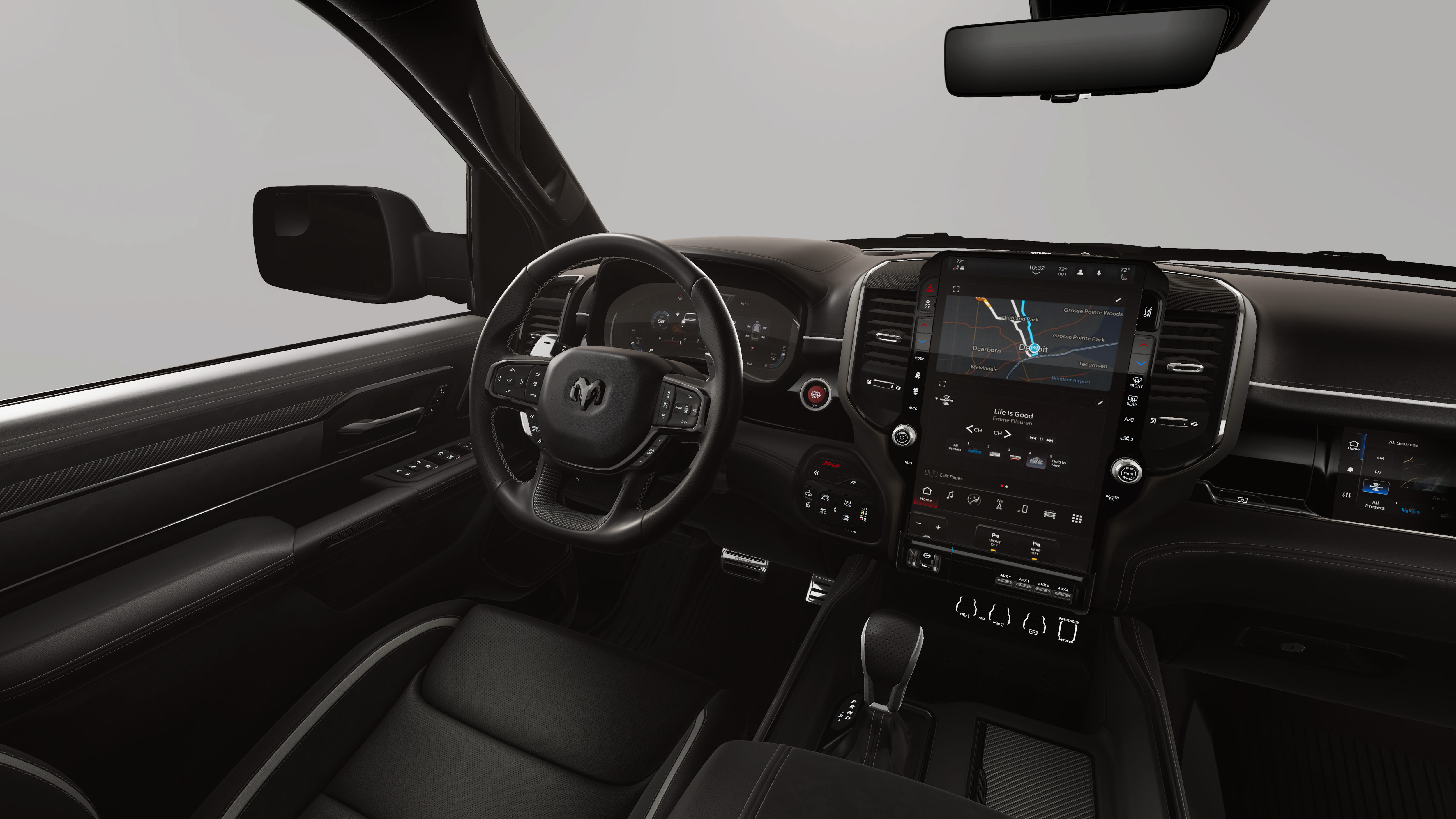2026 Ram 1500 4D Crew Cab 4WD Quick Order Package 22Y RHO, RHO Level 1 Equipment Group (12-Way/1-Way Trailer Connector, 14.4 Touchscreen Display, 240 Amp Alternator, 4G LTE Wi-Fi Hot Spot, Connected Travel and Traffic Services, Connectivity - US/Canada, Disassociated Touchscreen Display, Driver Power Seat Back Massage, Driver Seat Memory, Driver/Passenger Wrapped Assist Handles, Drowsy Driver Detection, Dual Wireless Charging Pad, Evasive Steer Assist, Exterior Mirrors with Memory, Front Passenger Interactive Display, Front Passenger Power Seat Back Massage, Full Length Premium Upgraded Floor Console, GPS Navigation, Hands-Free Active Driving Assist System, Harman/Kardon 19 Speaker Premium Sound, HD Radio, Heads-Up Display, Heated Second Row Seats, Integrated Center Stack Radio, Integrated Voice Command with Bluetooth®, Intersection Collision Assist System, Leather/Carbon Flat-Bottom Steering Wheel, LED CHMSL Lamp, Luxury Front Door Trim Panel, Power Adjustable Pedals with Memory, Power Tailgate, Premium Wrapped Instrument Panel Bezel, Radio: Uconnect 5 Nav with 14.4 Display, Radio/Driver Seat/Mirrors/Pedals Memory, Rain Sensitive Windshield Wipers, Real Carbon Fiber Interior Accents, Rear 60/40 Folding Split Recline Seat, SiriusXM Radio Service, Smartphone as a Key Capable, Surround View Camera System, Traffic Sign Recognition, USB Host Flip, Ventilated Front Seats, and Ventilated Rear Seats), 10 Speakers, 3.92 Rear Axle Ratio, 4-Wheel Disc Brakes, ABS brakes, Adaptive suspension, Adjustable pedals, Air Conditioning, Alloy wheels, AM/FM radio, Apple CarPlay/Android Auto, Auto High-beam Headlights, Auto Power-Folding Mirrors, Auto-dimming door mirrors, Auto-Dimming Exterior Driver Mirror, Auto-dimming Rear-View mirror, Automatic temperature control, Brake assist, Compass, Delay-off headlights, Dome Dual LED Reading Lamp, Driver door bin, Driver vanity mirror, Dual front impact airbags, Dual front side impact airbags, Dual-Pane Panoramic Sunroof, Electronic Stability Control, Exterior Mirrors Courtesy Lamps, Exterior Mirrors with Heating Element, Exterior Mirrors with Supplemental Signals, Exterior Parking Camera Rear, Flareside Box, Front anti-roll bar, Front Bucket Seats, Front Center Armrest w/Storage, Front dual zone A/C, Front fog lights, Front reading lights, Front wheel independent suspension, Fully automatic headlights, Garage door transmitter, Heated door mirrors, Heated front seats, Heated steering wheel, Illuminated entry, Leather Shift Knob, Leather steering wheel, Leather Trimmed Bucket Seats, Low tire pressure warning, MOPAR Off-Road Style Running Boards, MOPAR RHO Exterior Graphics, Navigation System, Occupant sensing airbag, Outside temperature display, Overhead airbag, Overhead console, Panic alarm, Passenger door bin, Passenger vanity mirror, Power door mirrors, Power driver seat, Power passenger seat, Power steering, Power windows, Radio data system, Radio: Uconnect 5 Navigation with 12.0 Display, Rear reading lights, Rear seat center armrest, Rear step bumper, Rear window defroster, Remote keyless entry, Security system, Speed control, Split folding rear seat, Sport steering wheel, Steering wheel mounted audio controls, Tachometer, Telescoping steering wheel, Tilt steering wheel, Traction control, Trip computer, Turn signal indicator mirrors, Variably intermittent wipers, Voltmeter, and Wheels: 18 x 9 Black Paint/Polish Aluminum *** Priced below KBB Fair Purchase Price ***