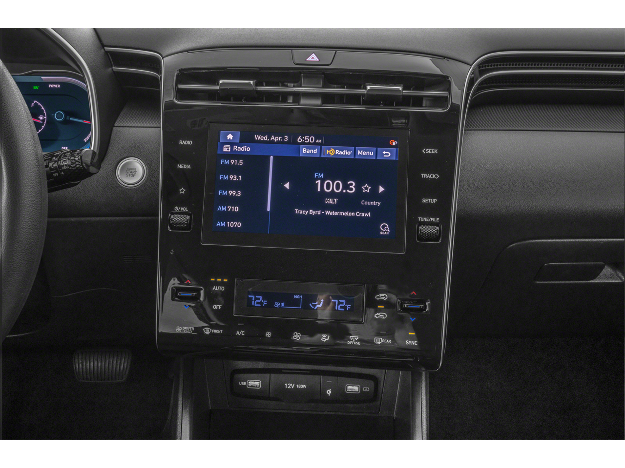 - Radio: AM/FM/HD Audio System -inc: 10.25" color touchscreen w/onboard navigation and traffic flow including incident data via HD radio (HERE), 6-speakers, SiriusXM satellite radio (3-month trial subscription), BlueLink+ connected car, Apple CarPlay and Android Auto integration